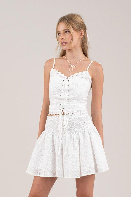 Embroidered Eyelet Lace Up Sleeveless Crop Top