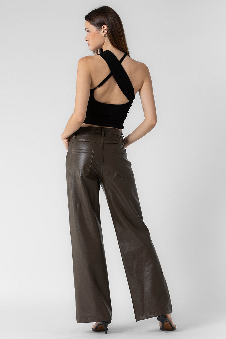 LADIES KNIT COTTON PLEATED CROSS FRONT HALTER TOP